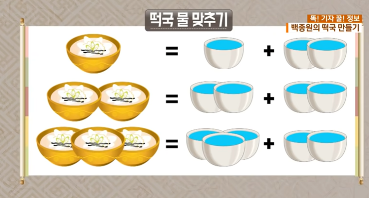 떡국 계량팁 : 떡국 떡 1인분 = 밥공기 1공기