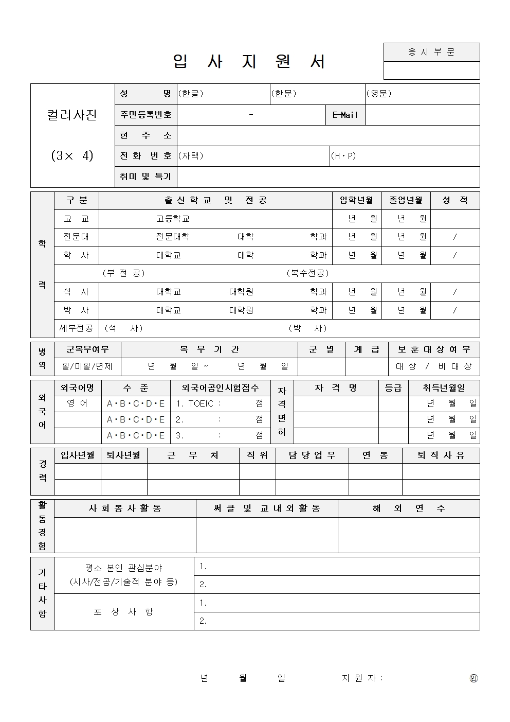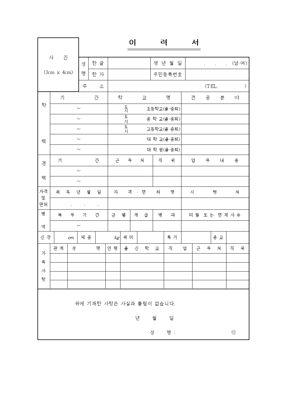 따라서 이러한 이력서를 거짓없이 사실대로 제출하는 것이 기본이며 가장 중요한 요소입니다.
