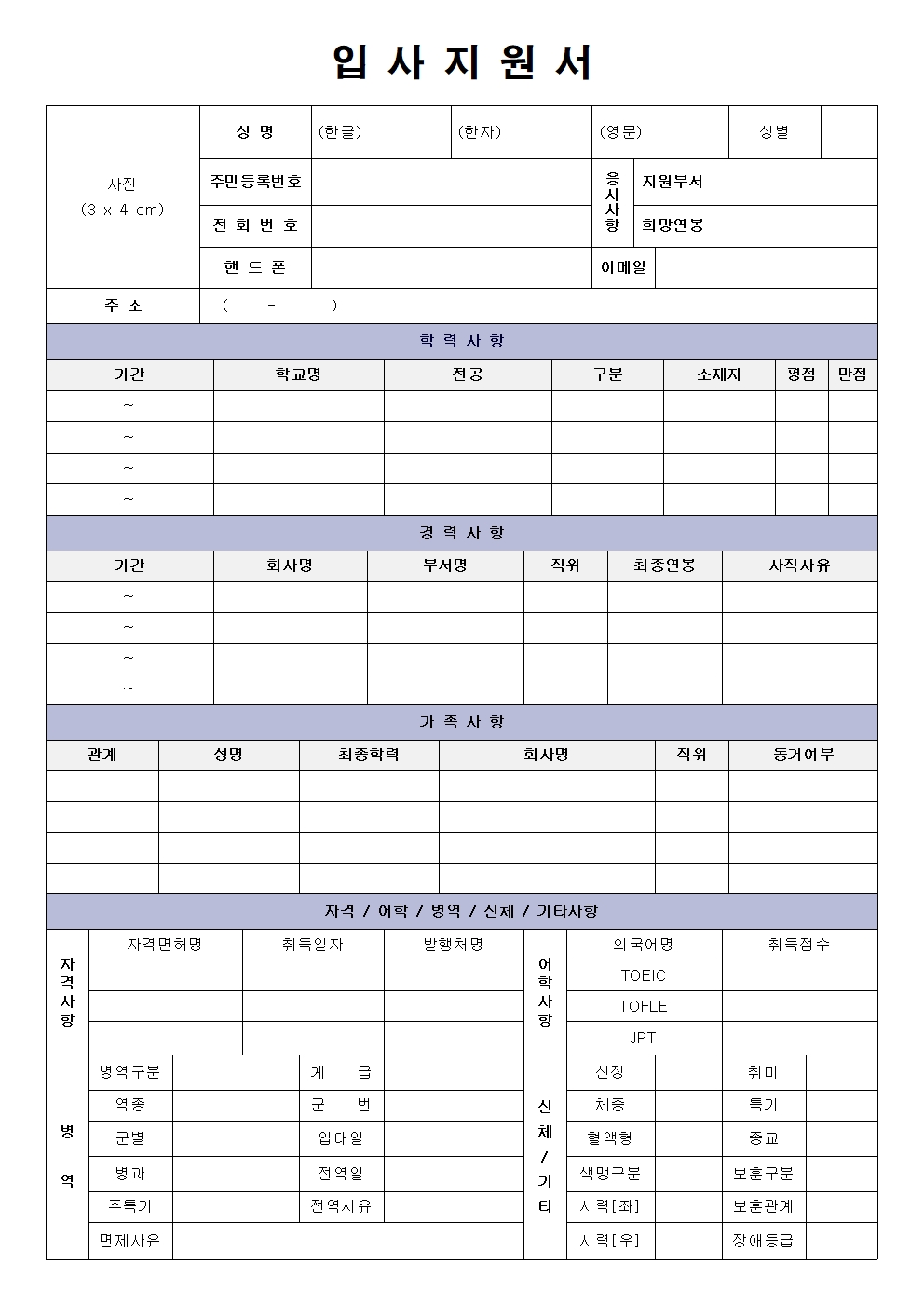 이력서 양식 무료 다운로드 자료를 모아 보았습니다.