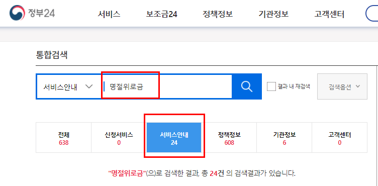 명절위로금을 가장 빠르게 찾을 수 있는 방법은 정부24에서 지역별로 명절위로금을 검색해보는 방법이 있습니다.