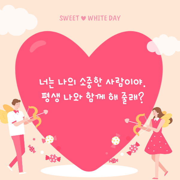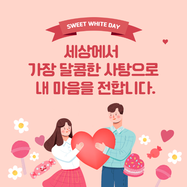 발렌타인데이때 여자가 남자에게 초콜렛을 주며 마음을 고백했다면 이번 화이트데이에서는 남자가 여자에거 사랑을 고백하며 달콤한 사탕을 선물하게 됩니다.