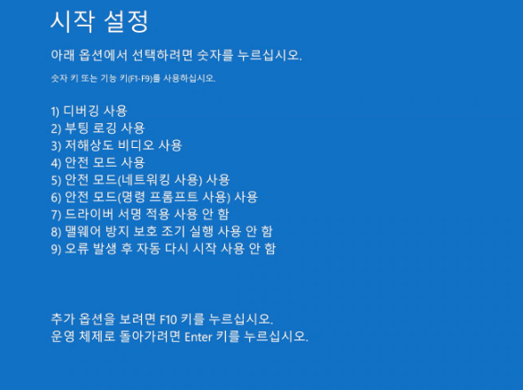 1. Windows10 의 경우 F7 키를 눌러서 안전모드로 진입합니다.