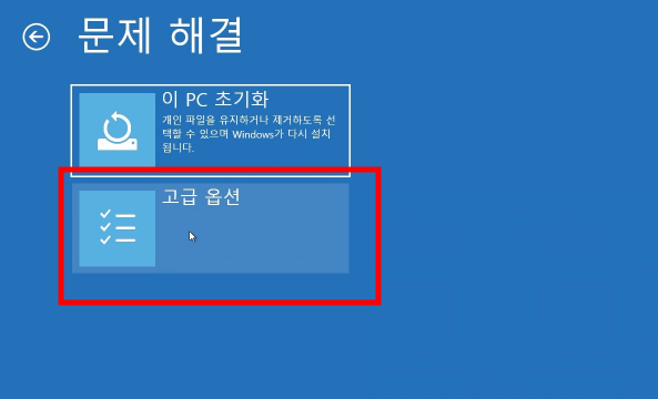 4. 문제해결 - 고급 옵션을 선택합니다.