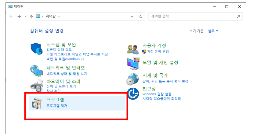 제어판 - 프로그램 제거 로 들어 갑니다.