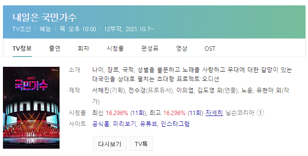 내일은 국민가수 투표는 쿠팡과 쿠팡플레이에서 대국민 응원 투표를 진행하고 있습니다.